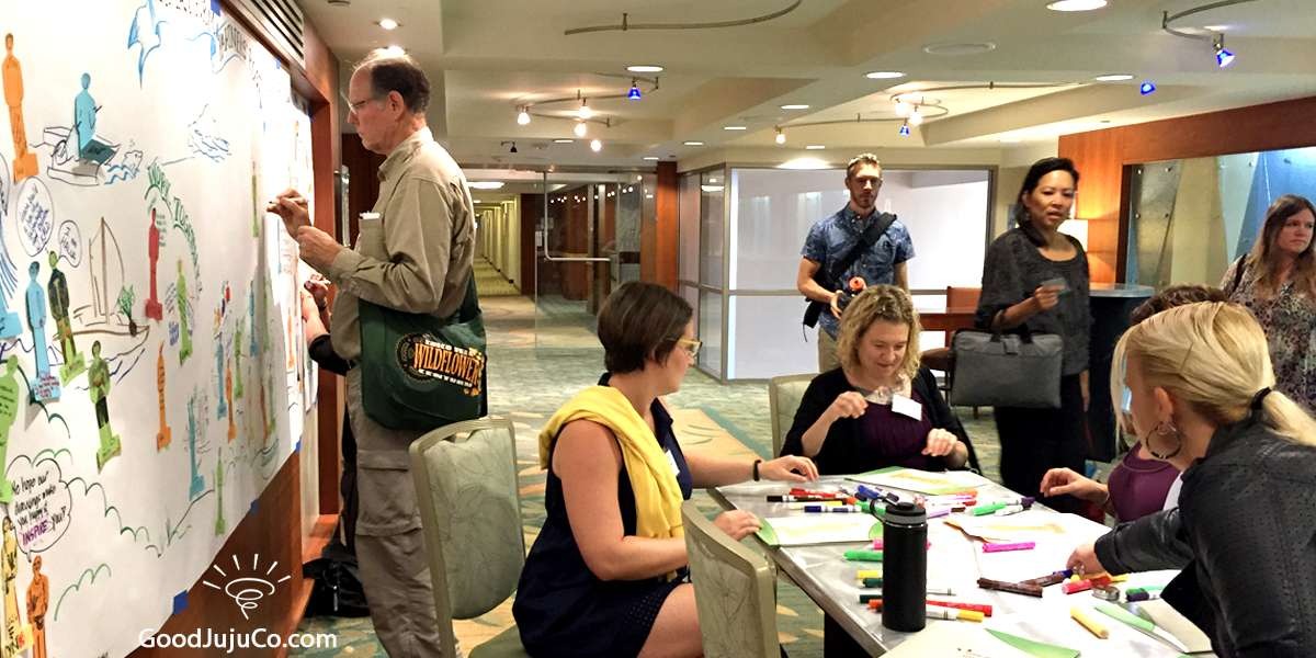 Good Juju also provided facilitation tools and basic facilitation training to larger group work at the event that included initial compilation and integration all comments into larger unified pieces.