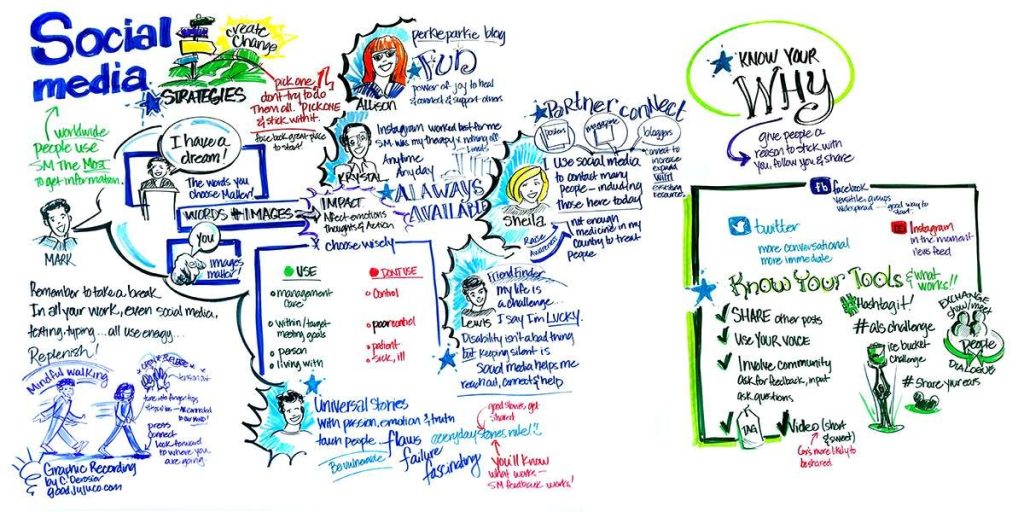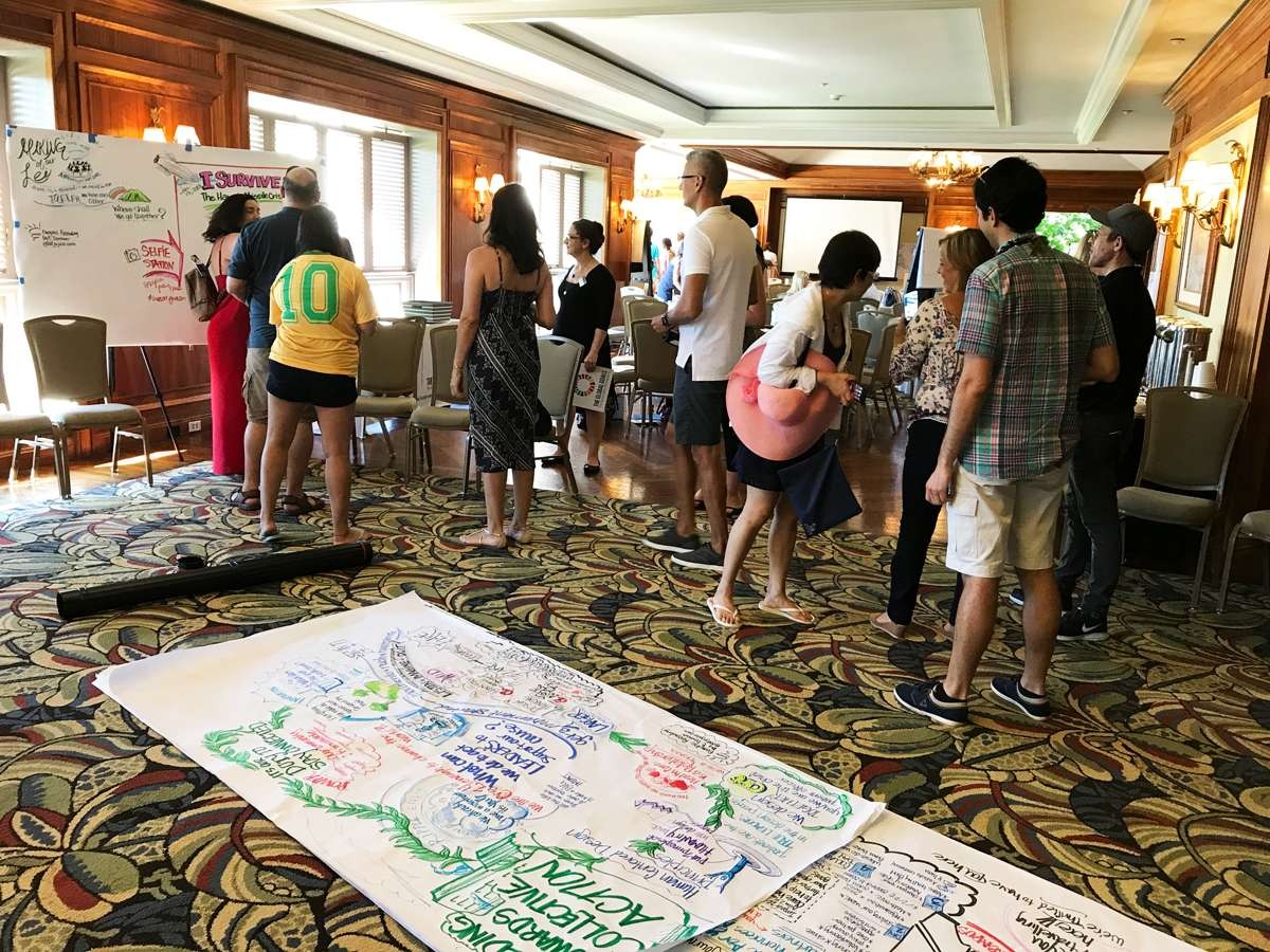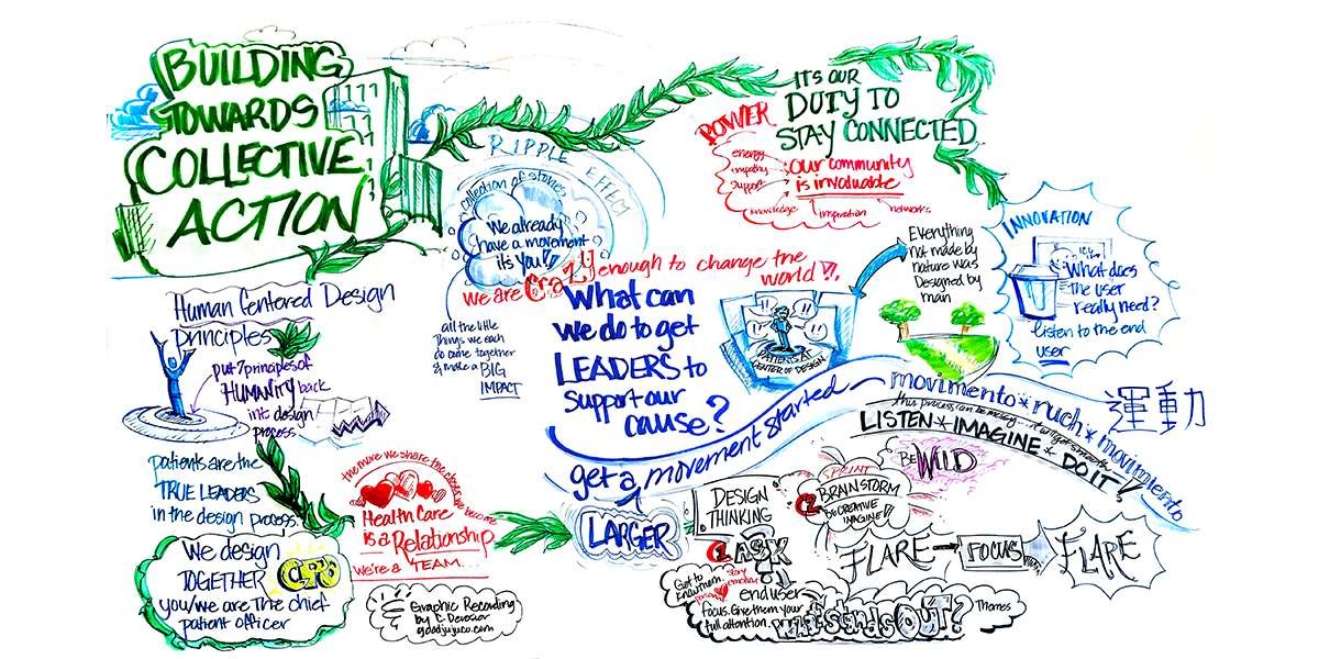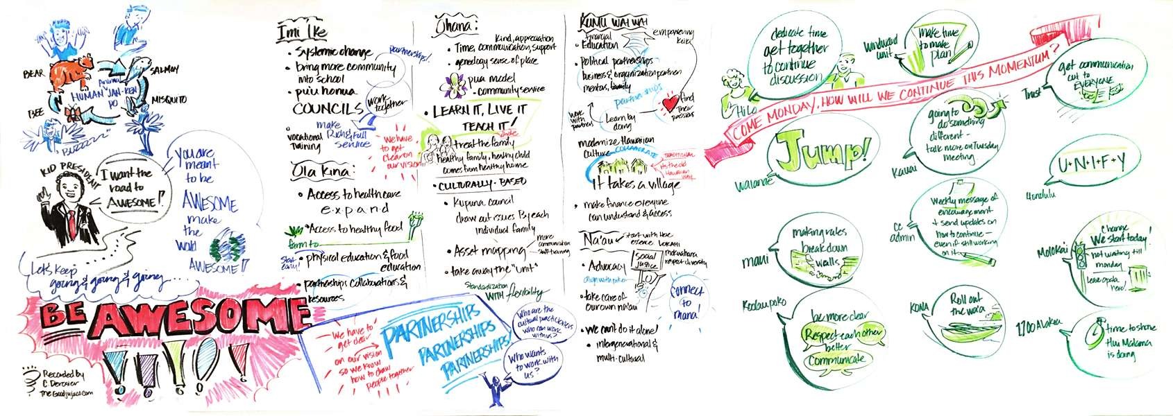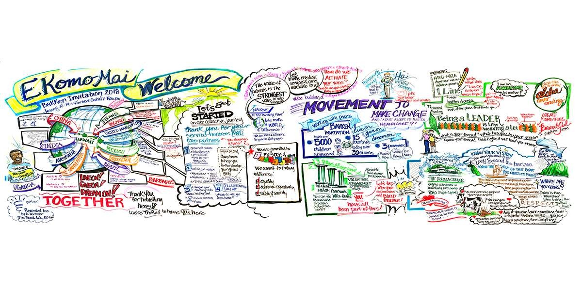 Pictures speak a thousand works and graphics document when words fail (or when discussions happen faster than translators can translate!). Live drawn charts helped break language barriers and provided fall-back support to translators. Non-english speaking attendees often revisited charts with their interpreters to make sure they didn’t miss any key details.