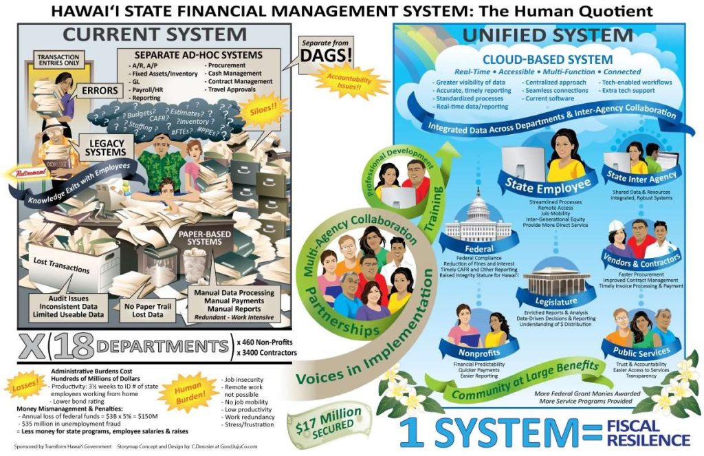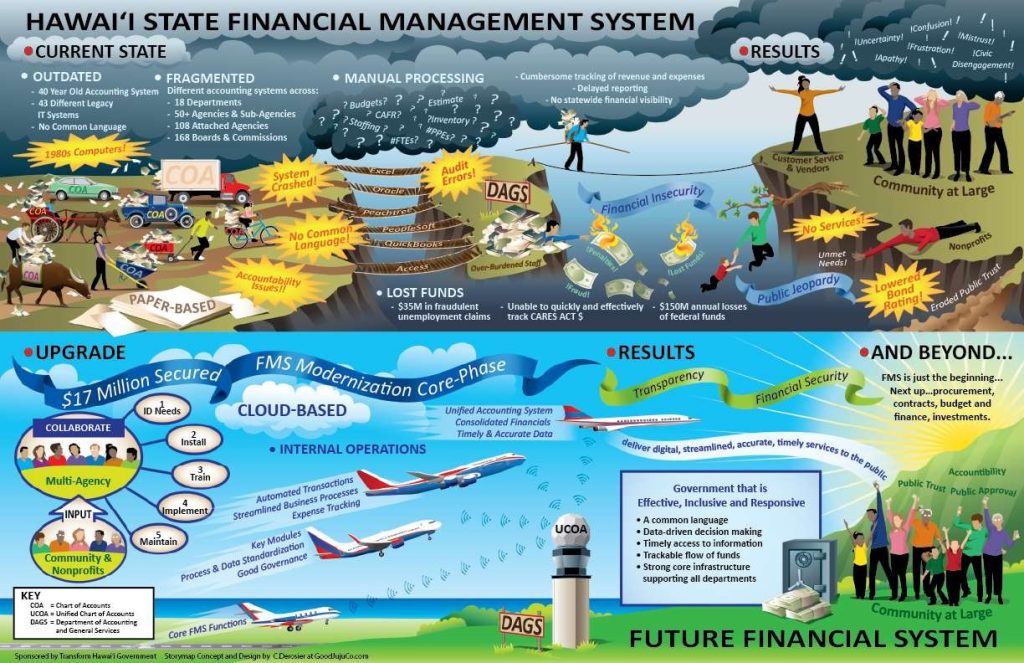 Presented to the State Legislature, decision makers and public support groups to garner support and funding for a unified financial management system.