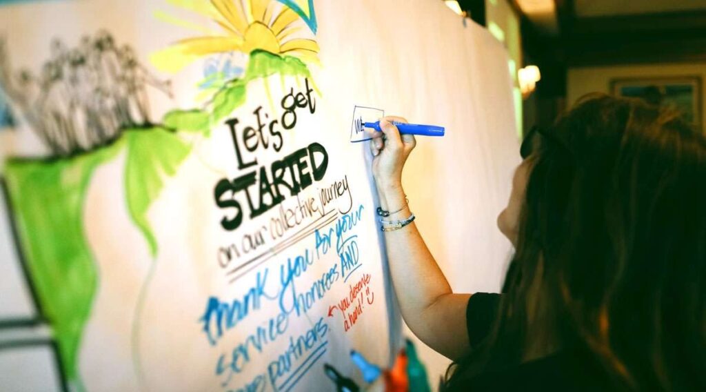 These large-scale drawings are hard to ignore and draw attention long after the event. People love to take a closer look at the charts and discuss the content. Many take photos to keep for their records or share on social media.