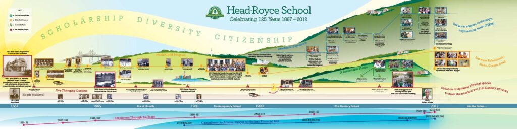 Printed as a wall decal, this history map graces the school’s main hallway.